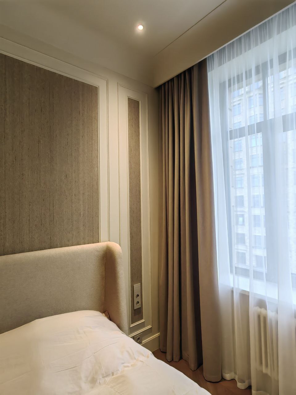 Сочетание плотных портьер и легкого тюля — классический вариант для штор в гостинице. Такая комбинация позволяет гостям регулировать освещенность и создает уютную атмосферу.